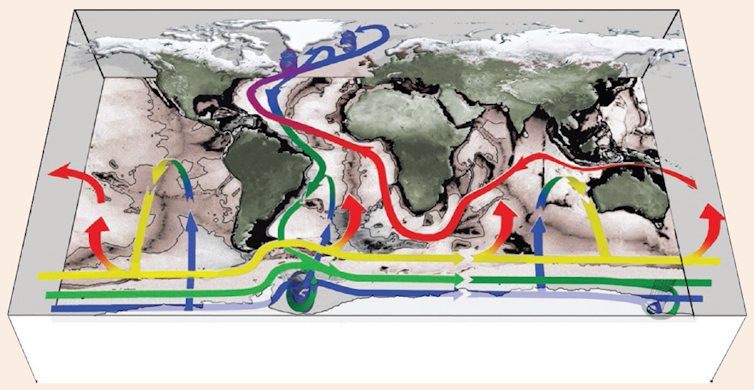 La cinta transportadora global y la circulación termoclina pueden imaginarse como el sistema circulatorio de la Tierra.